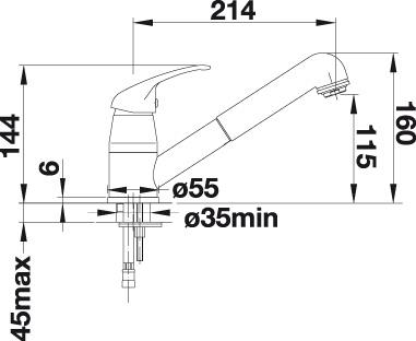 - Длина излива: 214 мм