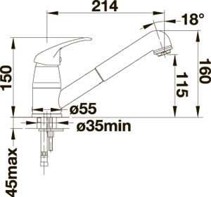 Длина излива: 214 мм