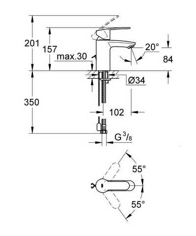 | Излив | длина 102 мм, высота 84 мм |