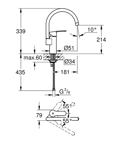 | Выдвижной излив | нет |