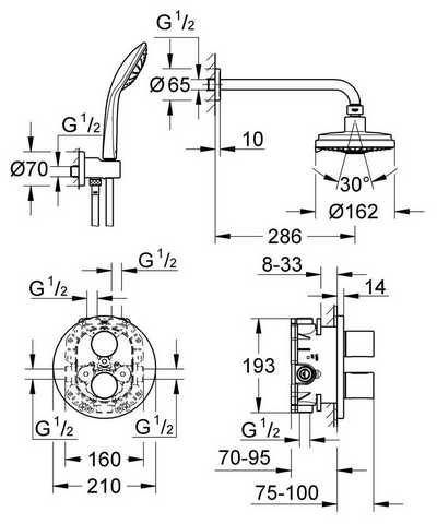 | Диаметр верхнего душа | 162 мм |