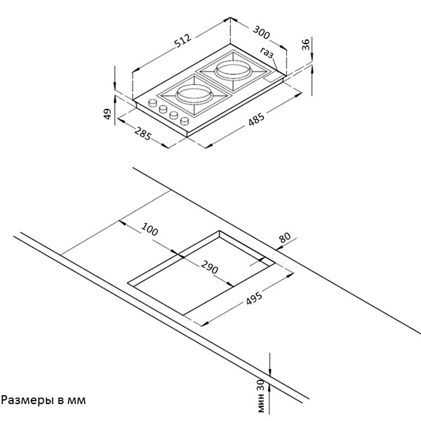 | Размеры для встраивания (ШхГ) | 56 x 48 см |
