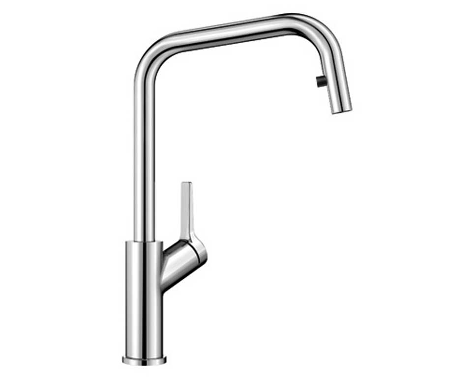 Скрытый выдвигающийся шланг с направляющим выступом на обратной стороне излива