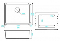 - Размер мойки: 543х456 мм