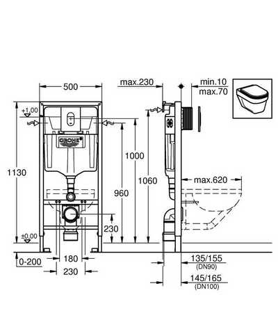 Rapid Sl 4 в 1 в сборе, для подвесного унитаза (38929000)
