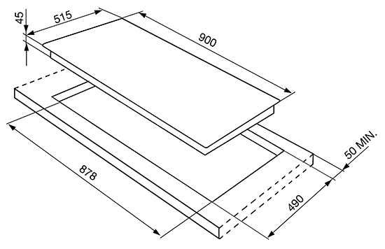 Размер выреза 878 х 490 мм