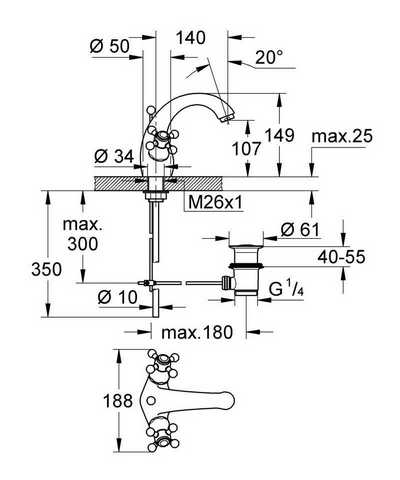 | Излив | длина 140 мм, высота 107 мм |