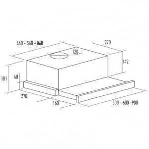 Мощность подключения: 260 ВтРазмеры вытяжки (ВхШхГ), мм: 181x600x270