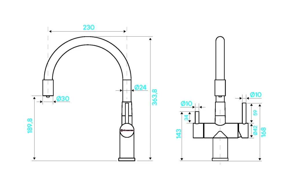 - Смеситель для кухни с гибким изливом и возможностью подключения фильтра