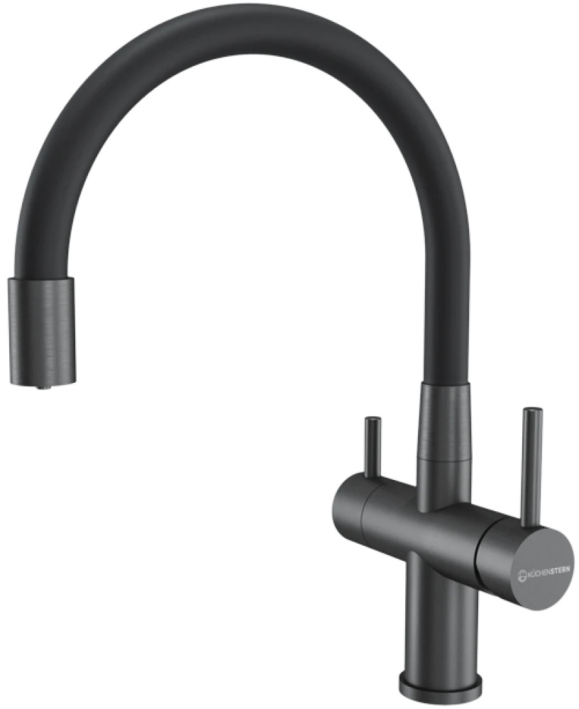 Смеситель для кухни Kuchenstern WURM-FE гибкий излив вороненая сталь 750GM80 с подключением фильтра