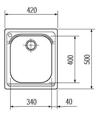• размер 42х50; вырез 48х50; чаша 34х40х19