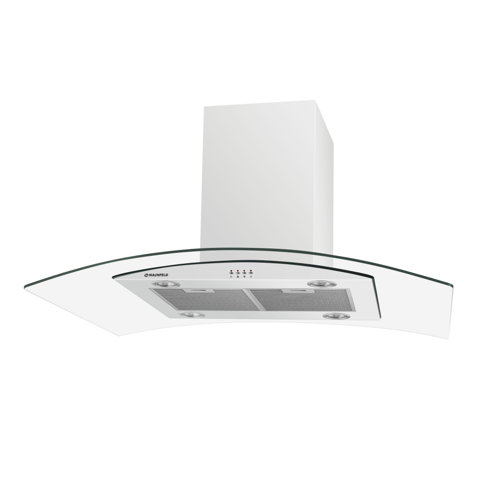 Островная вытяжка белая с прозрачным стеклом