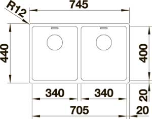 Радиус закругления чаш 22 мм