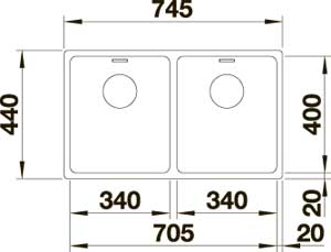 - Размеры мойки 745 х 500 мм