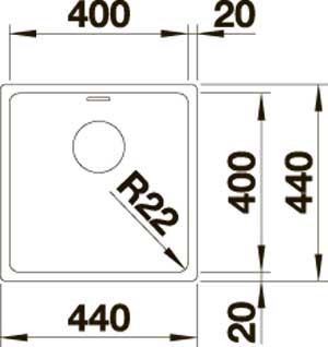 - Радиус закругления чаш 22 мм