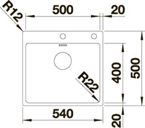 Радиус закругления чаш 22 мм