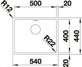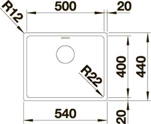 Радиус закругления чаши 22 мм