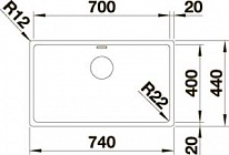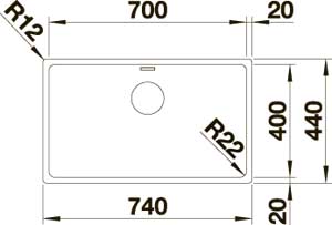 Радиус закругления чаши 22 мм