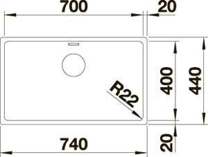 - Радиус закругления чаш 22 мм