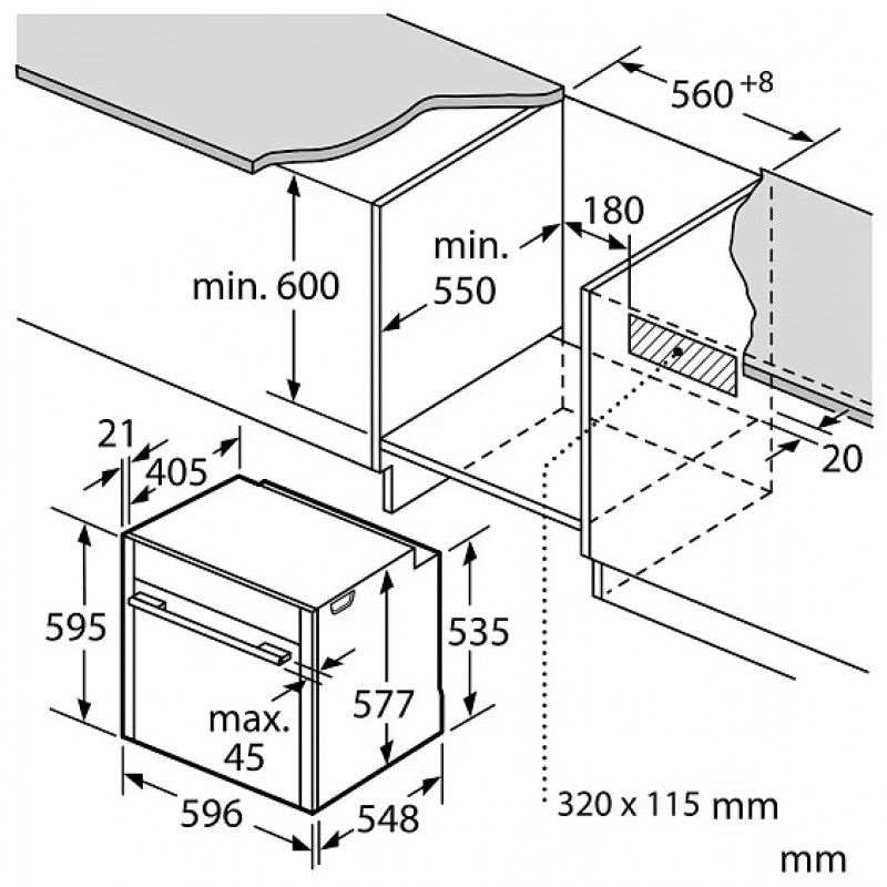 - Размеры ниши для встраивания :(В х Ш х Г) 58.5-59.5 х 56-56.8 х 55 см