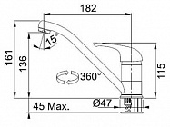 Угол поворота излива 360°
