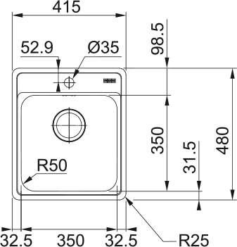 - Размер мойки 415 х 480 мм