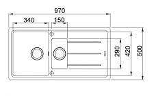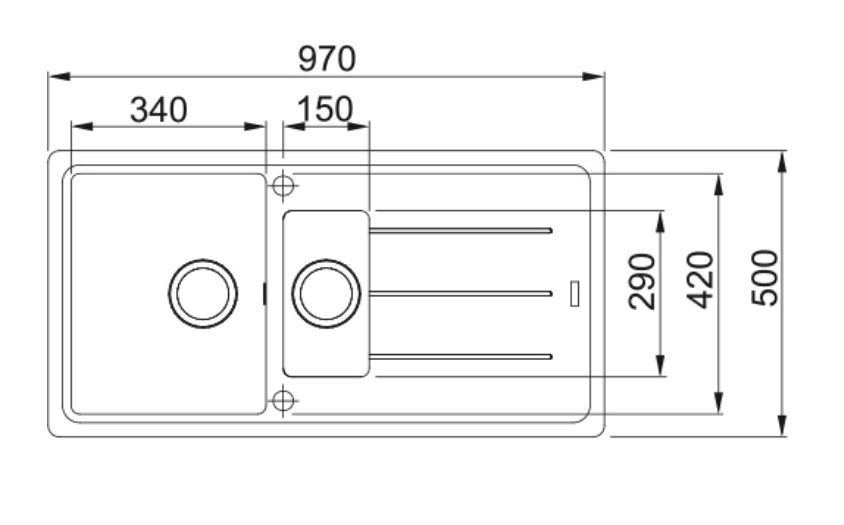 Размер мойки 970 х 500 мм