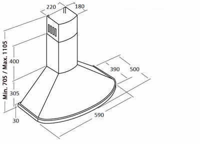 Размеры вытяжки (ВхШхГ), мм: 685-1040х590х500