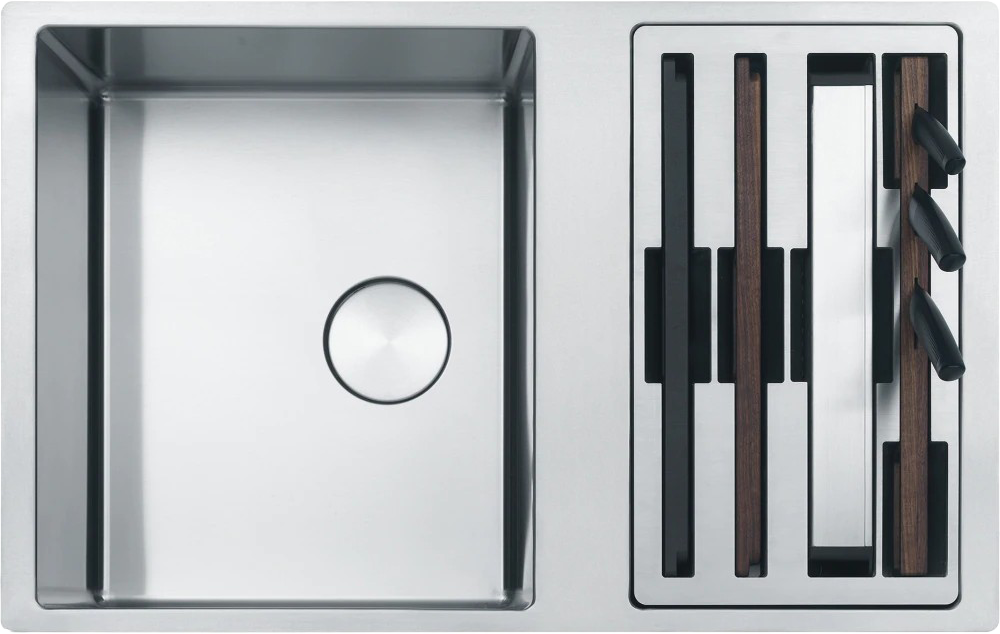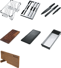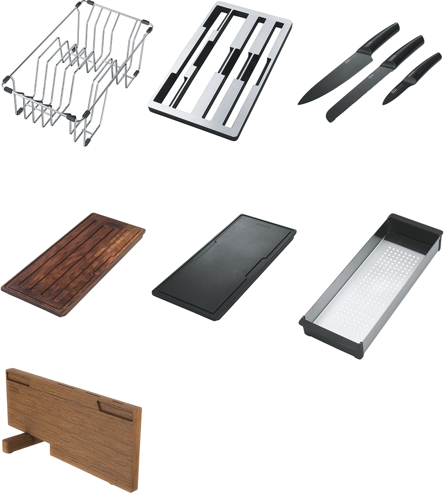 - Аксессуары в комплекте: миска для сушки, разделочная доска пластик, набор ножей 3 шт., разделочная доска дерево, держатель/подставка для ножей, сушилка для посуды