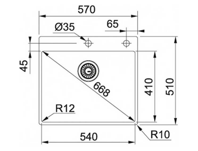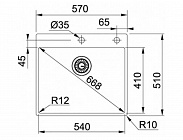 размер мойки 725 x 450 ммразмер чаши 685 х410 х 200 мм R 12 мм