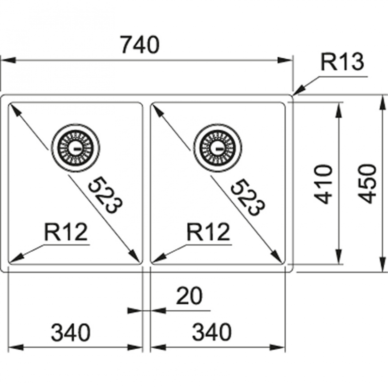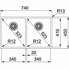 - Размер мойки 740 х 450 мм
