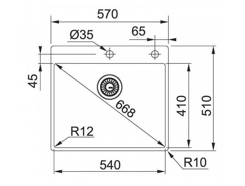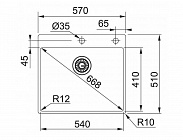 размер мойки 510 x 510 ммразмер чаши 540 х410 х200 мм R 10 мм