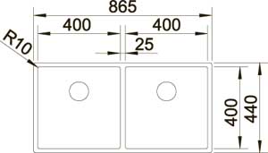 Радиус закругления чаш 10 мм