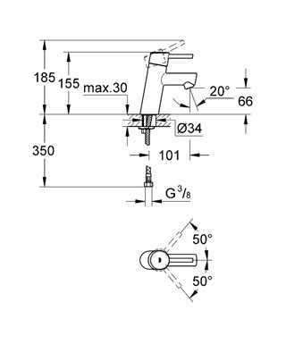| Угол поворота рукоятки | горизонтальный 100° |