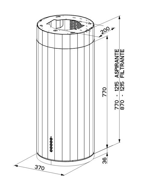 Faber CORINTHIA ISOLA X/OM A37 — стильная островная вытяжка в цилиндрическом корпусе. Устройство оборудовано высокоэффективным двигателем нового поколения EVO и работает по принципу периметральной аспирации воздуха. К особенностям модели относятся: поддержка дистанционного управления, встроенная LED-подсветка и наличие интенсивного режима.