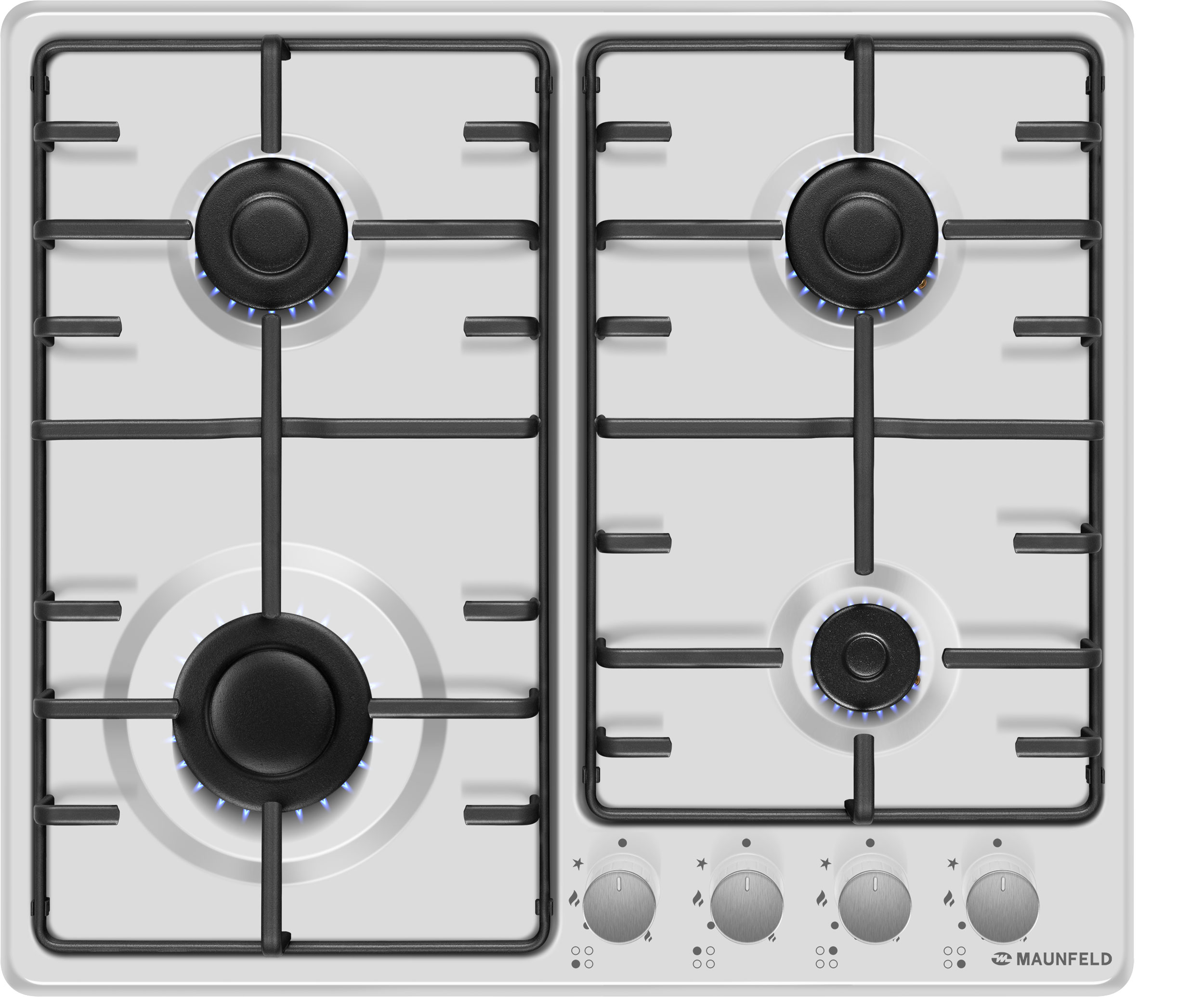 - Газовая поверхность 60 см цвет белый эмаль/металл