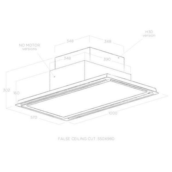 Вытяжка ELICA HILIGHT NO MOTOR IX/A/100 потолочная , белое стекло +нержавеющая сталь, без мотора Размер: 1000 х 570 х 302 мм