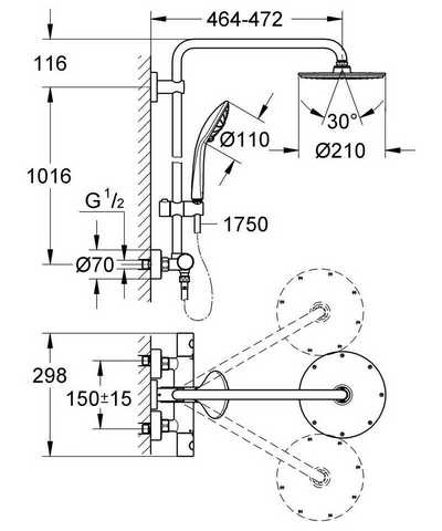 | Диаметр верхнего душа | 210 мм |