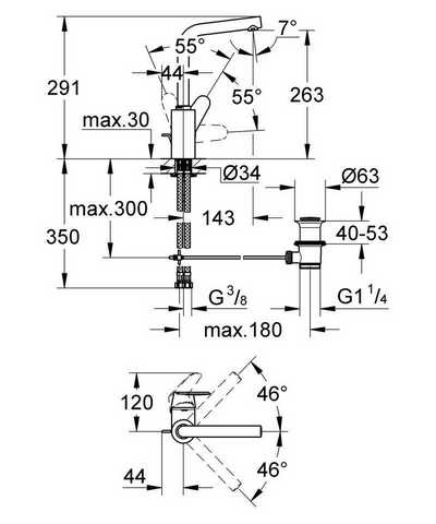| Излив | длина 143 мм, высота 263 мм |