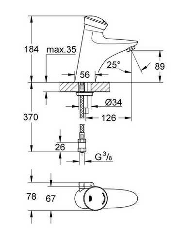 | Дополнительная информация | прерывание подачи воды старт/стоп, автоматическое отключение, автоматическое безопасное отключение воды после 180 секунд непрерывного пользования (заводская настройка), питание от литиевой батарейка 6V тип CR-P2, контроль зарядки батарейки, автоматический смыв 5 мину после 3 дней без использования, модус термической дезинфекции |