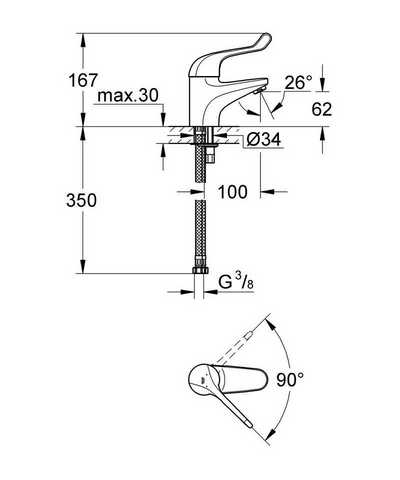 | Излив | длина 100 мм, высота 62 мм |