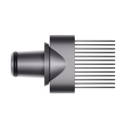 - Диффузор с длинными зубцами. Диффузор делает выразительными завитки и локоны. Для работы с крупными прядями можно использовать зубцы, которые бережно воздействуют на кожу головы и не повреждают ее