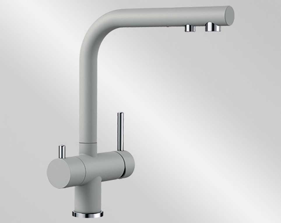 Смеситель Blanco Fontas объединяет сразу две функции - питьевая и обычная вода из одного смесителя. Высокий излив обладает двойной функциональностью, питьевая вода не смешивается с обычной и подается из отдельного отверстия. Смесителем удобно пользоваться , так как он имеет два отдельных рычага управления для водопроводной и фильтрованной воды соответственно. Излив смесителя вращается на 360 градусов, что позволяет направить поток воды в наиболее удобное место.