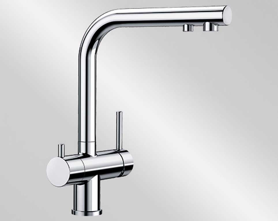Смеситель Blanco Fontas II объединяет сразу две функции - питьевая и обычная вода из одного смесителя. Высокий излив обладает двойной функциональностью, питьевая вода не смешивается с обычной и подается из отдельного отверстия. Смесителем удобно пользоваться , так как он имеет два отдельных рычага управления для водопроводной и фильтрованной воды соответственно. Излив смесителя вращается на 360 градусов, что позволяет направить поток воды в наиболее удобное место.
