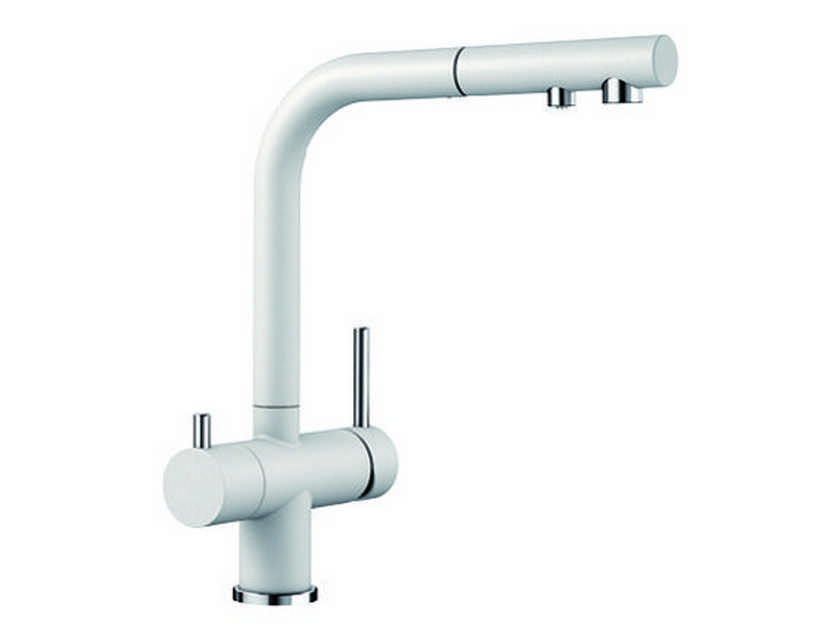 Инновационный смеситель Blanco Fontas -S II это 3-в-1: фильтрованная и обычная вода из выдвижного излива. Высокий излив обладает двойной функциональностью, питьевая вода не смешивается с обычной и подается из отдельного отверстия. Смесителем удобно пользоваться , так как он имеет два отдельных рычага управления для водопроводной и фильтрованной воды соответственно. Угол поворота 180*