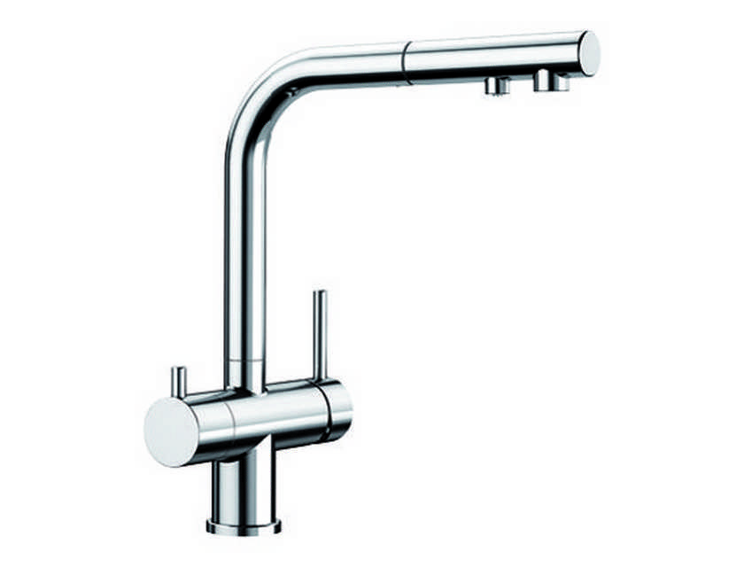 Инновационный смеситель Blanco Fontas -S II это 3-в-1: фильтрованная и обычная вода из выдвижного излива. Высокий излив обладает двойной функциональностью, питьевая вода не смешивается с обычной и подается из отдельного отверстия. Смесителем удобно пользоваться , так как он имеет два отдельных рычага управления для водопроводной и фильтрованной воды соответственно. Угол поворота 180*