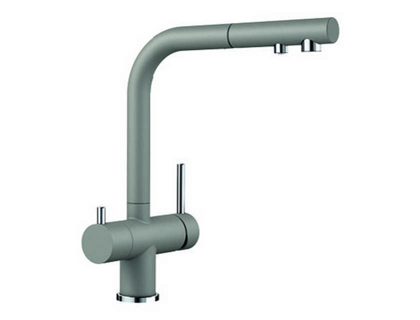 Инновационный смеситель Blanco Fontas -S II это 3-в-1: фильтрованная и обычная вода из выдвижного излива. Высокий излив обладает двойной функциональностью, питьевая вода не смешивается с обычной и подается из отдельного отверстия. Смесителем удобно пользоваться , так как он имеет два отдельных рычага управления для водопроводной и фильтрованной воды соответственно. Угол поворота 180*