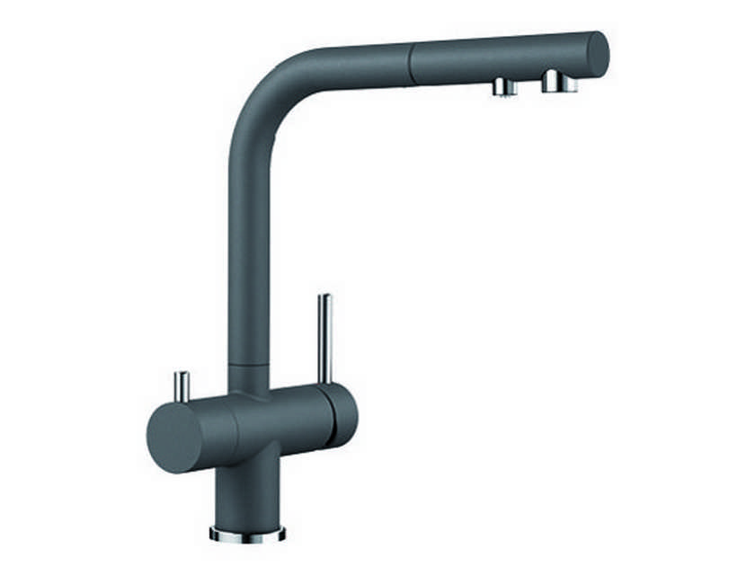 Инновационный смеситель Blanco Fontas -S II это 3-в-1: фильтрованная и обычная вода из выдвижного излива. Высокий излив обладает двойной функциональностью, питьевая вода не смешивается с обычной и подается из отдельного отверстия. Смесителем удобно пользоваться , так как он имеет два отдельных рычага управления для водопроводной и фильтрованной воды соответственно. Угол поворота 180*