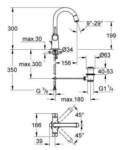 | Излив | длина 156 мм, высота 199 мм |