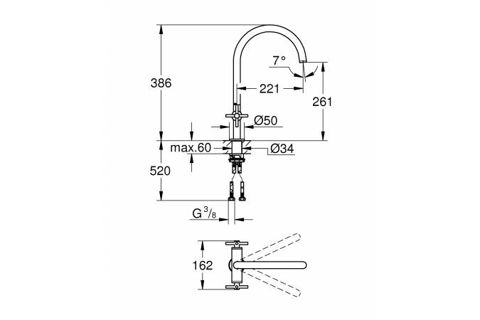 - аэратор поворотный трубкообразный излив регулируемый радиус поворота 0° / 150° / 360°